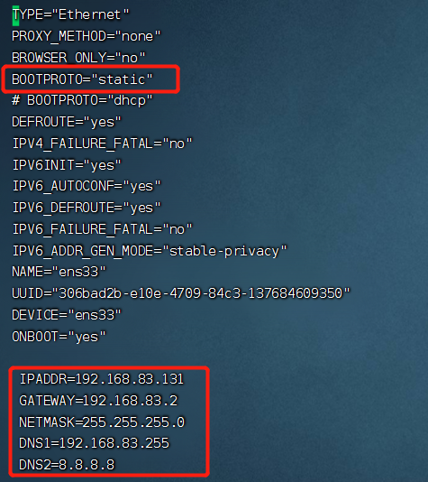 vi /etc/sysconfig/network-scripts/ifcfg-ens33